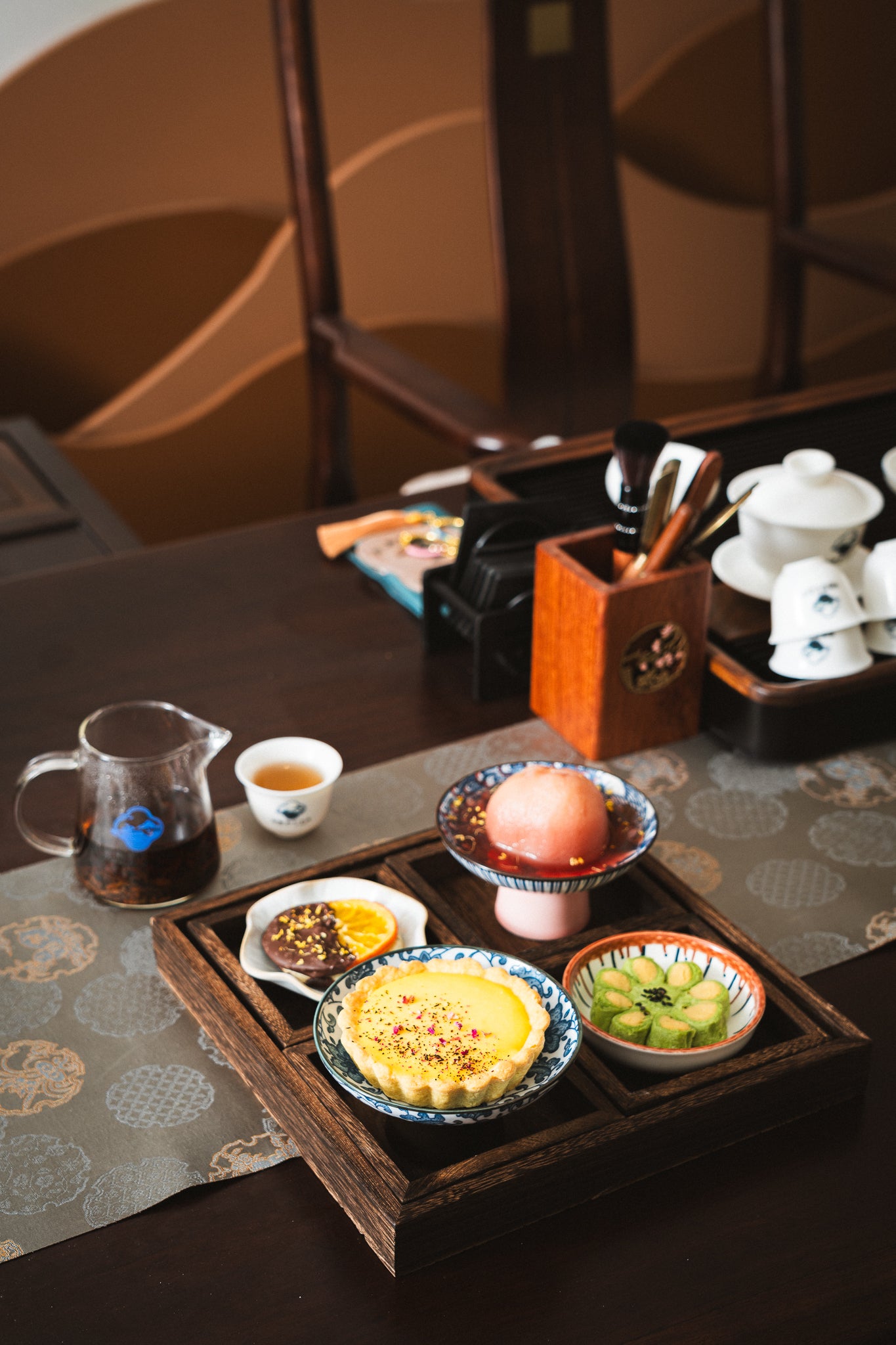 若你偏好更私密、安靜的時光,茶空間下午茶體驗則於包間進行,讓時間慢下來,在茶與甜點之間,自然展開對話。