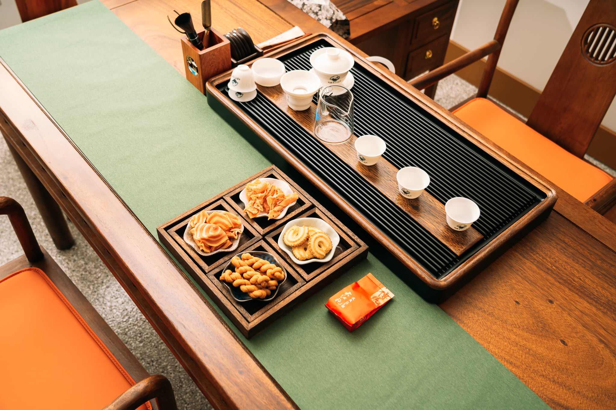 A curated pairing of Chinese tea with crafted desserts and bites, enjoyed in a private tea room.